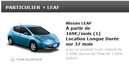 Il faut débourser un premier loyer de 5000 euros pour la Nissan Leaf.