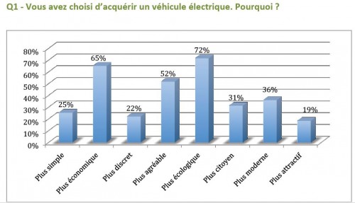 L’enquête a enregistré 250 participations. On compte en France quelques 10 000 utilisateurs de voitures électriques, dont 2,5% ont donc répondu au questionnaire. Cela équivaudrait à la participation de 750 000 conducteurs de voitures thermiques (30 millions de véhicules en France)!